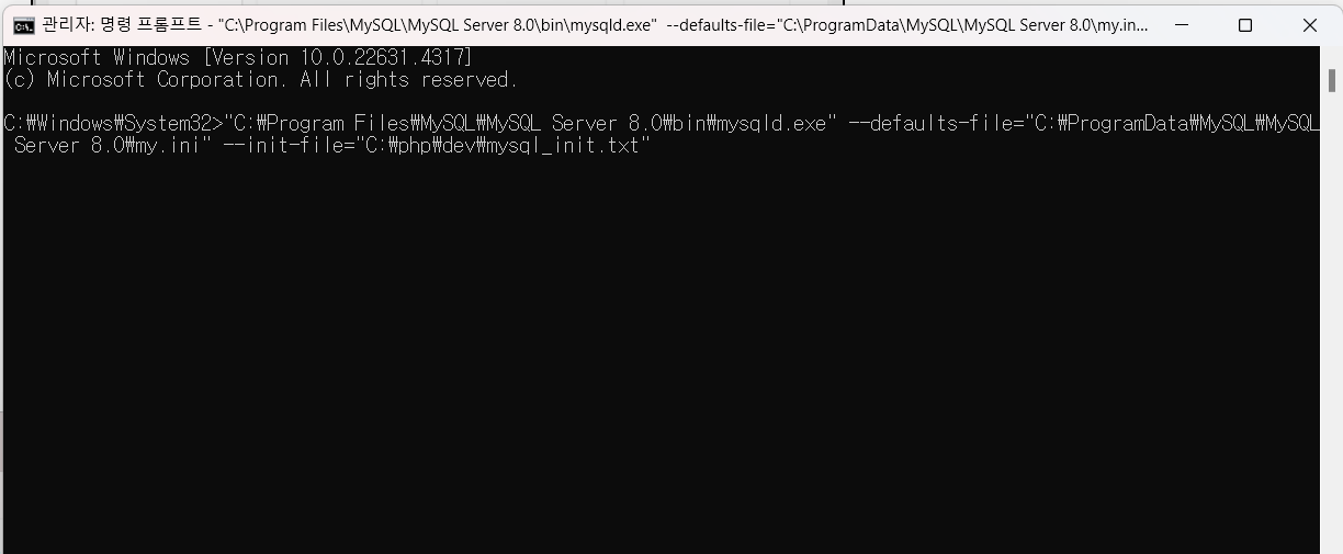 "MySQL80 실행경로" --init-file="명령어 텍스트 파일"