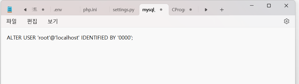나는 C:\php\dev 경로 내 mysql_init.txt로 저장했다~!