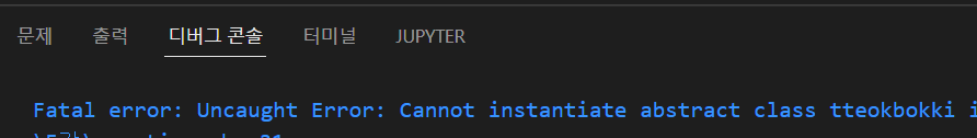 추상 클래스는 인스턴스를 가질 수 없다. 그래서 인스턴스 생성하려고 하면 이렇게 오류가 뜬다. 꼭 상속을 해서 사용해야 한다.
